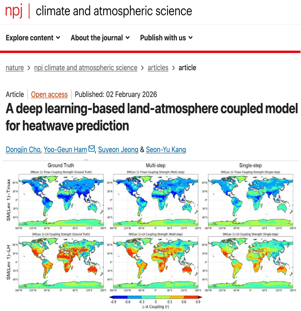 We conduct research to improve the predictive performance of AI-based global atmosphere–land and ocean models using large-scale observational and reanalysis datasets. Our work focuses on developing AI model architectures and training strategies that can effectively learn the spatiotemporal variability of key Earth system variables. By incorporating interactions among the atmosphere, ocean, and land surface, we aim to build more realistic Earth system prediction models.